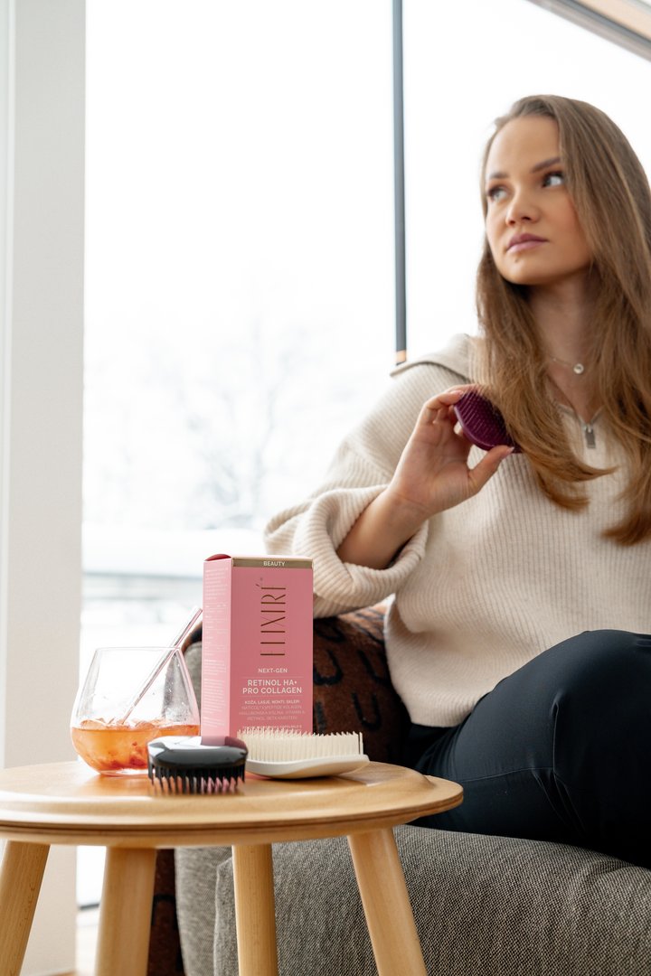 Elixiré® v zgodbo vstopa s patentiranim tri peptid kolagenom, obogatenim z retinolom in beta karotenom – najbolj raziskano kombinacijo, ki v sodobni lepotni rutini predstavlja temelj podpore koži in lasem. Retinol in beta karatoen, znana po svojih obnovitvenih učinkih, v povezavi s kolagenom podpirata naravne procese telesa in pomagata ohranjati občutek čvrstosti, sijaja in vitalnosti. To ni hitra rešitev, temveč dolgoročna podpora, ki se postopoma odraža tudi navzven.