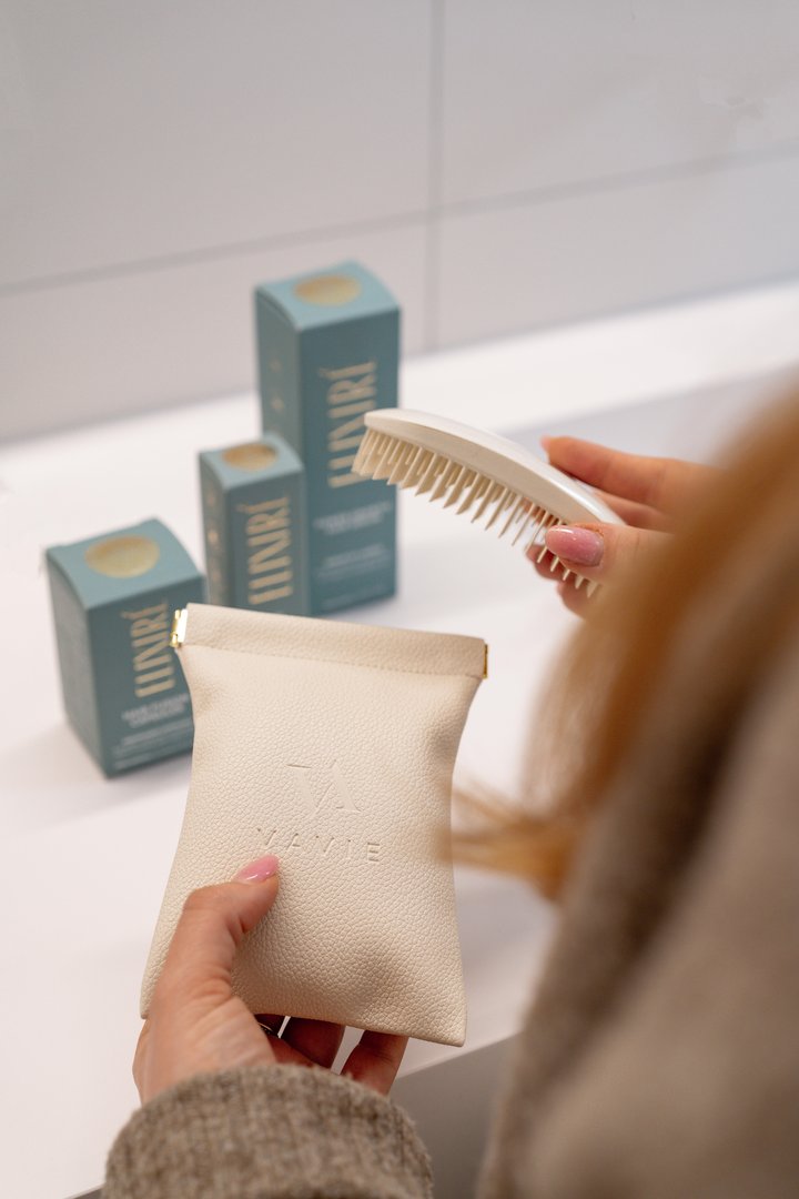 Vavie na drugi strani lepoto postavlja v vsakodnevni stik z lasmi. Njihova krtača ni le pripomoček, temveč del rituala, ki lase neguje, jih razčesava z občutkom in spoštovanjem ter vsakodnevno skrbi za njihov videz. Gre za tisti tihi trenutek dneva, ko se ustavimo – zjutraj pred ogledalom ali zvečer, ko se dan umiri. Vavie predstavlja premišljen pristop k negi las, kjer se nežnost in učinkovitost srečata v vsakdanjem ritualu. Prav ta filozofija se odraža tudi v njeni zasnovi. Krtača je oblikovana s trislojnimi ščetinami, ki omogočajo učinkovito razčesavanje ter so primerne tako za mokre kot suhe lase. Izdelana je iz premium materialov, ki zagotavljajo dolgotrajno uporabo, njena izjemno tanka oblika pa omogoča, da se brez težav prilega vsaki torbici – kot diskreten, a nepogrešljiv spremljevalec vsakdana.