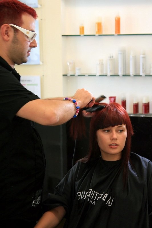 Tjaša je v Lassanin salon prišla z dolgimi lasmi, postriženimi v enojni liniji, frufru pa je imela počesan na stran.