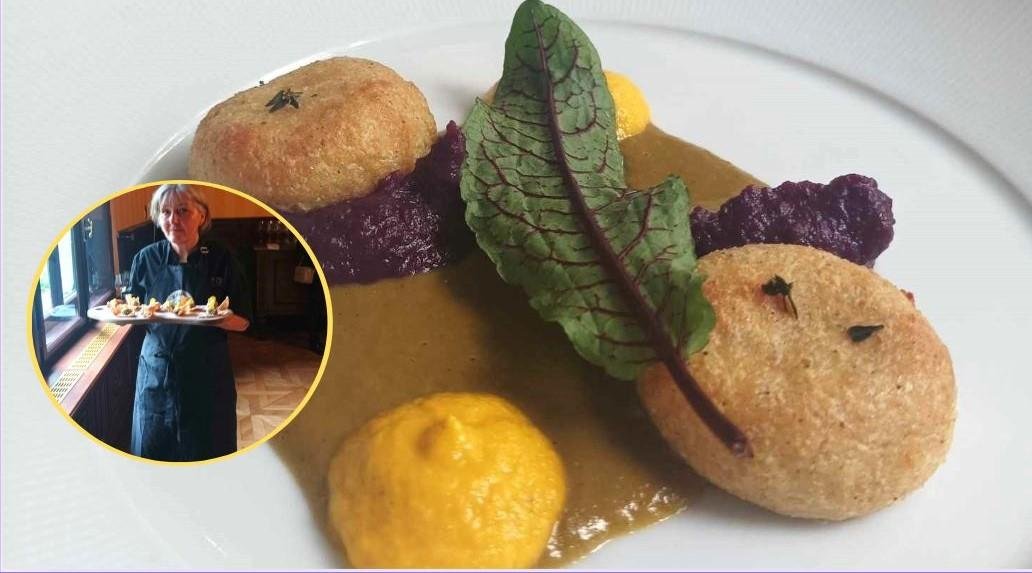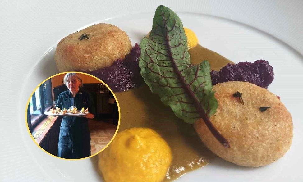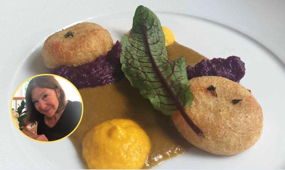 Po juhi je poskusila solato iz ajde, pršuta in pečenega radiča, lokalnega krapa, osmojenega s sipinim črnilom in posutega z janežem, ob katerem je bila postrv iz bližnje reke ter piščanca v porovi kremi na kaši iz khorasanske pšenice, starodavnega zrna, sorodnega durum pšenici.