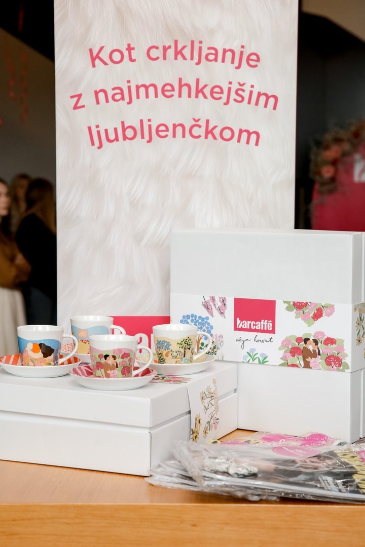 To popolno vzdušje je v najlepšem slogu zaokrožilo darilo presenečenja. Ko so povabljene dobile skodelico iz nove kolekcije Barcaffe skodelic, ki so nastale v sodelovanju z ilustratorko Aljo Horvat, so bili na vseh obrazih veliki nasmeški.