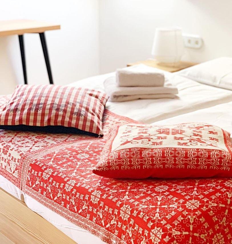 Obnova domačije je potekala z uporabo naravnih, lokalnih materialov in tradicionalnih tehnik gradnje. Ohranili so debele zidove, originalno pohištvo in nekatere več kot sto let stare poslikave. Tudi skrbno zložena brisača ima tu svoj namen in pomen.