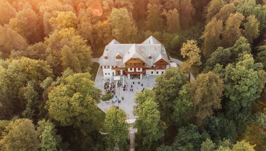 Stavbna zgodovina se je na tem prostoru začela leta 1835, ko je ljubljansko kazinsko društvo v nekdanji gozdarski hišici uredilo svoje zabavišče. Zgradba je bila povsem prenovljena in razširjena v hotel po načrtih arhitekta Cirila Metoda Kocha. Ta jo je oblikoval v duhu secesije in narodnega sloga, kar je danes vidno v detajlih fasade, lesenih gankih in notranji ureditvi.