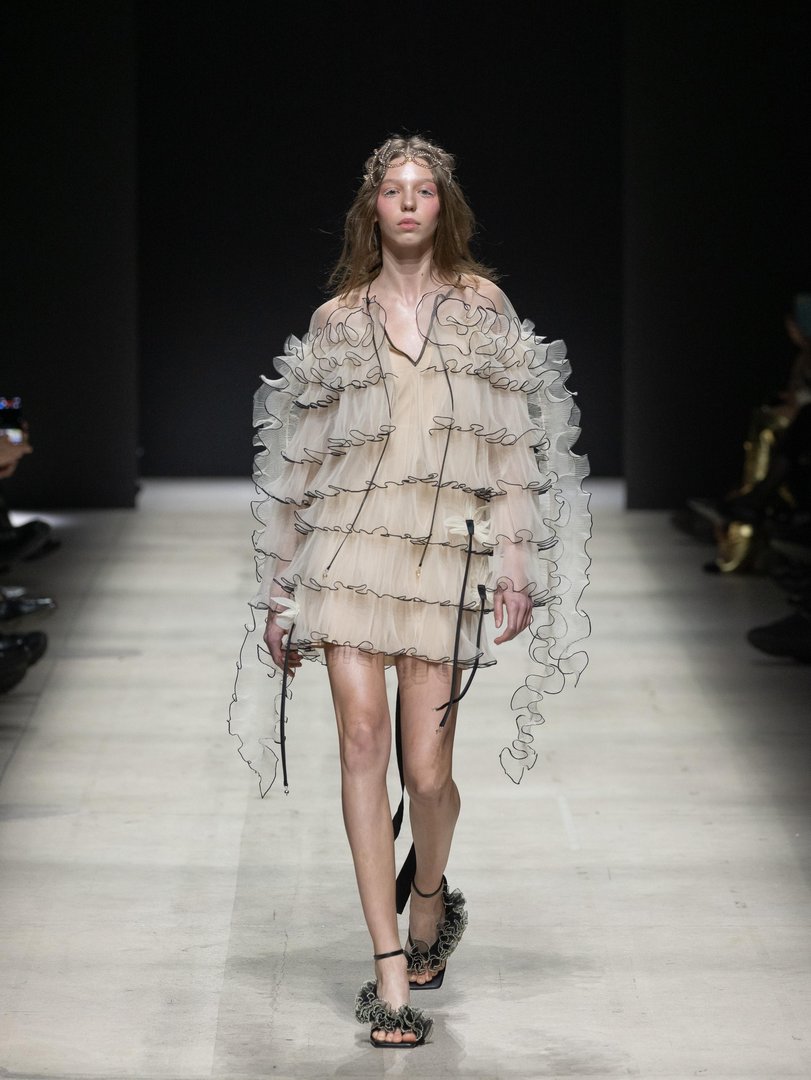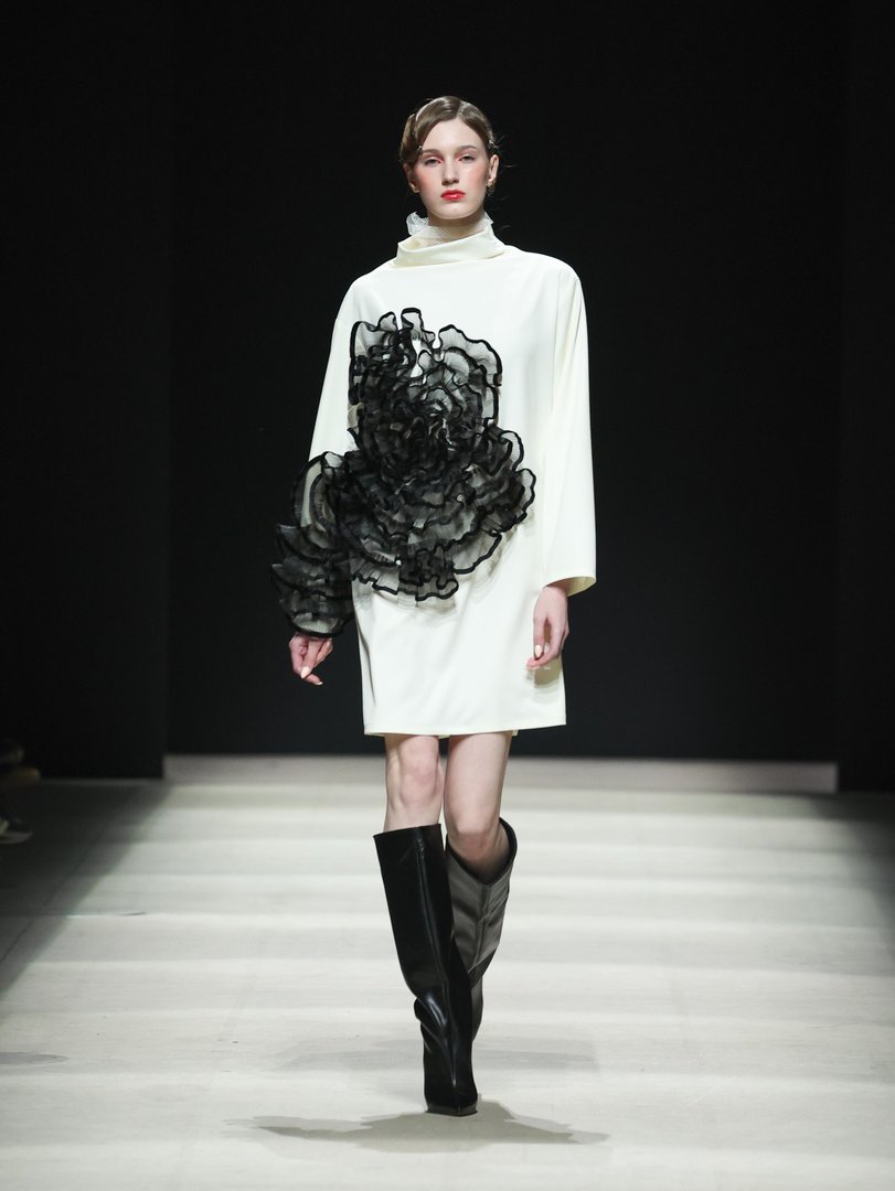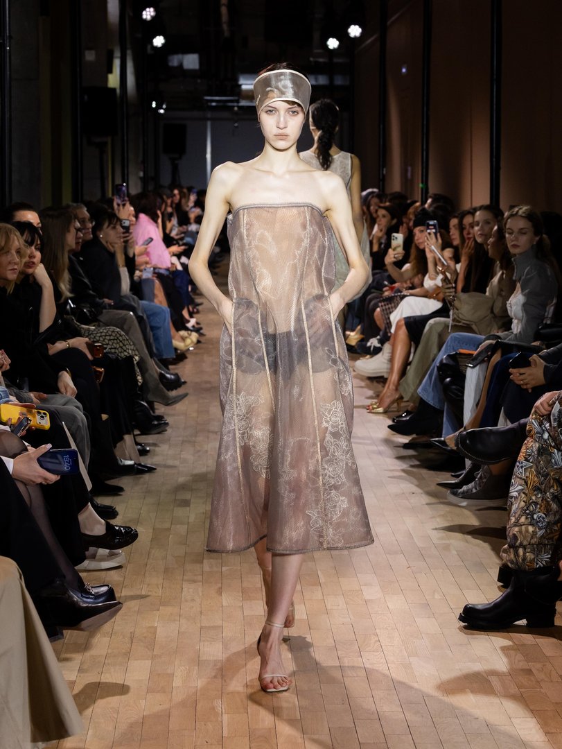 Začeli smo v prestolnici - z Moskovsko modno hišo, katere kolekcija je v umetelnem smislu analizirala podobo sodobne ženske v dinamičnem svetu. Pisan na kožo spomladanskemu konceptu, se kolekcija ‘Divje vrtnice’ poigrava z diametralnima nasprotjema ženske nežnosti in krhkosti z suverenostjo in pogumom. Kontrasti so se iz filozofije izza kolekcije spretno prezrcalili tudi v materiale - občudovali smo nežno svilo, zračen šifon v tandemih z robustnimi materiali. Pravijo, da je bistvo življenja v ravnovesju, in izreku so prisluhnili tudi v barvni paleti. Kdo pravi,da se sivine ne priležejo peščenim naravnim tonom?