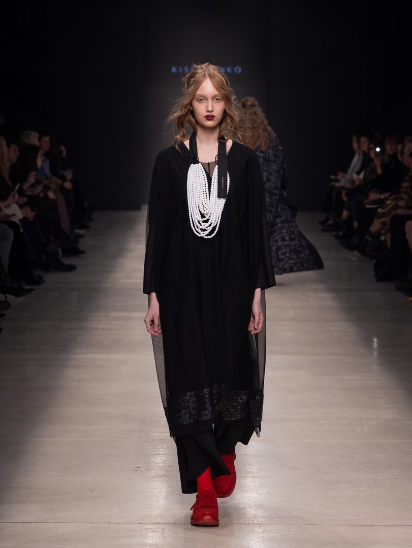 Iz omenjene kulturne metropole izvira tudi modna hiša Kisselenko, ki je pristen dokaz, da lahko črnina in kompleksni kroji svojega lastnika zazibajo v presenetljivo izstopajoč in hkrati vsestranski videz. Kolekcijo so dopolnjevali okrasni naborki in detajli v kontrastnih barvah. V spominu nam je ostal prav slednji - monokromatski videz z izstopajočim rdečim obuvalom in poudarjenim nakitom.