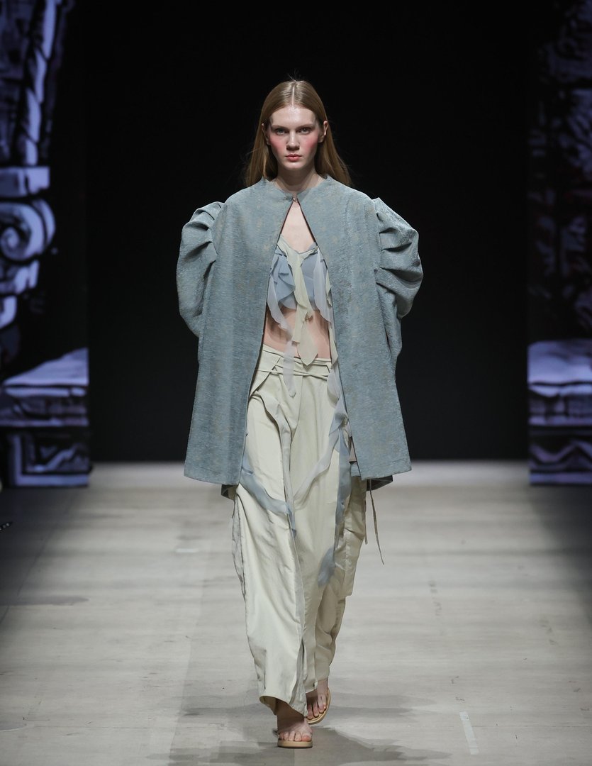 Ko se je kot prvi videz po modni brvi sprehodilo dekle, odeto v fuzijo tekstur v modri barvni paleti, je bilo jasno, da je ustvarjalec v kolekcijo vpeljal osebno noto. Skozi tekstilno umetnost je pripovedoval zgodbo nostalgije po zgodnjem otroštvu - in čas pomanjkanja, ki je narod spodbujal k ustvarjalnem izrazu. Čipkasta krila in resasti detajli so odzvanjali dinamiko, ki je na novo postavila pravila tradicionalne estetike.