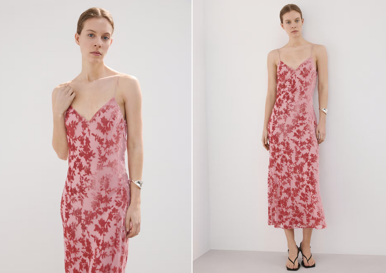 Originalna Dior obleka je seveda praktično nedosegljiva. A dobra novica je, da takšen videz temelji na kroju, materialu in občutku, ne na logotipu, zato ga lahko dosežete tudi s primerljivimi oblekami tako imenovanih znamk ulične mode. Nam je v oko padla slip obleka znamke Mango, ki je na njihovi spletni strani na voljo za 79,99 evrov.