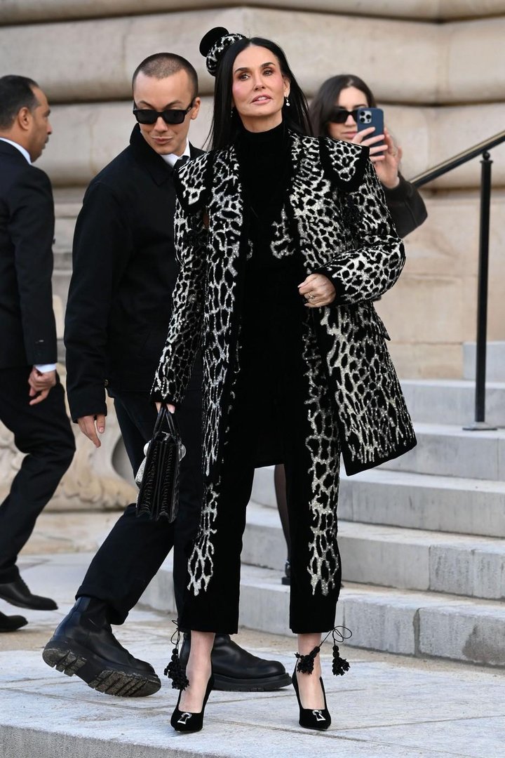 Hollywoodska igralka Demi Moore je ob prihodu na modno revijo prestižne modne hiše Schiaparelli v Parizu poskrbela za pravo modno poslastico. V sijajni kombinaciji z živalskim vzorcem in ekstravagantnimi dodatki je bila pravo utelešenje pariškega šika.