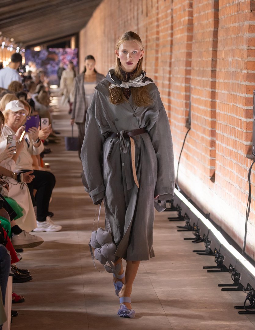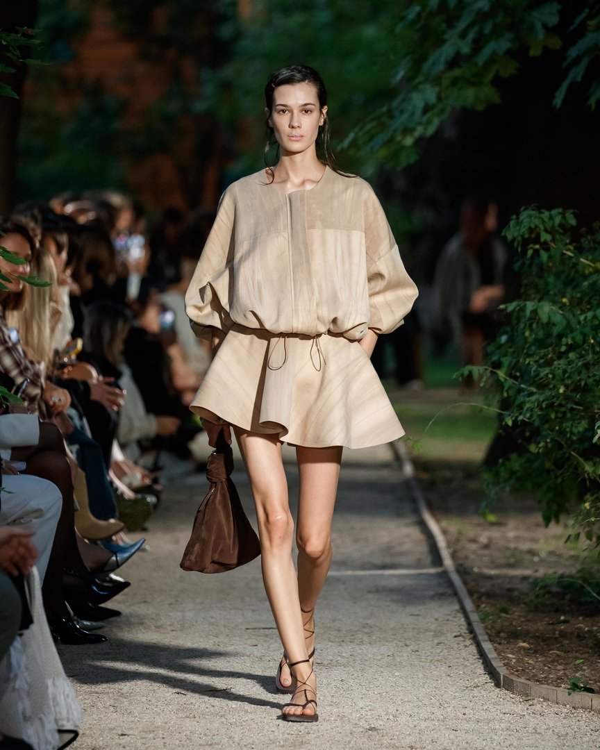 Na impozantni lokaciji - posestvu enega izmed največjih literarnih genijev, Leva Tolstoja - so završale čutne tkanine. Kolekcija modne hiše Ruban je očarala s padajočimi, zračnimi tkaninami, tudi semiša in usnja, ki so v kombinaciji z vozlanimi detajli ustvarjale občutek, da šepetajo njihovemu opazovalcu. Prikimali smo besedam Alise Ruban, soustanoviteljice modne hiše Ruban, da so tkanine v svojem nastajanju bile plod misli na breztežnost, lahkotnost in občutek letenja. Realizacijo njenih kreativnih idej je bilo moč videti iz prve vrste - tkanine so poplesavale med romantičnimi cvetovi Tolstojevega vrta in udejanjile Rubanovo vizijo: "Podoba ženske, ki se je nekoliko oddaljila od realnosti in si dovolila živeti sončne dni z lahkoto in svobodo misli."