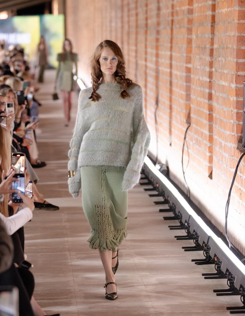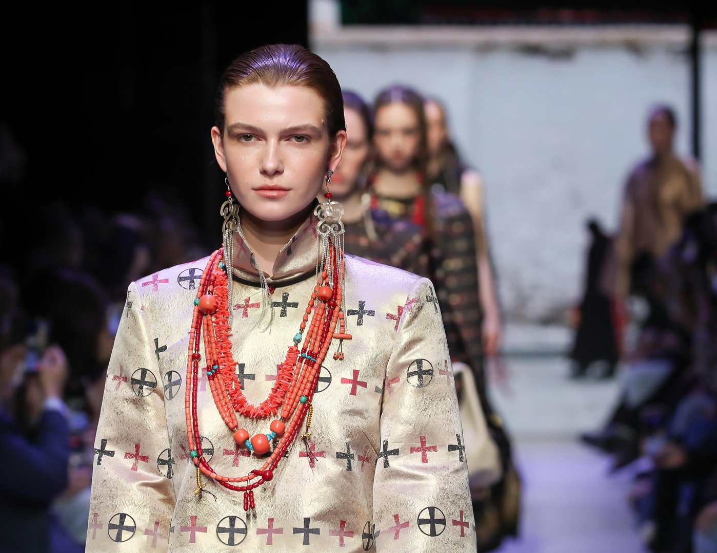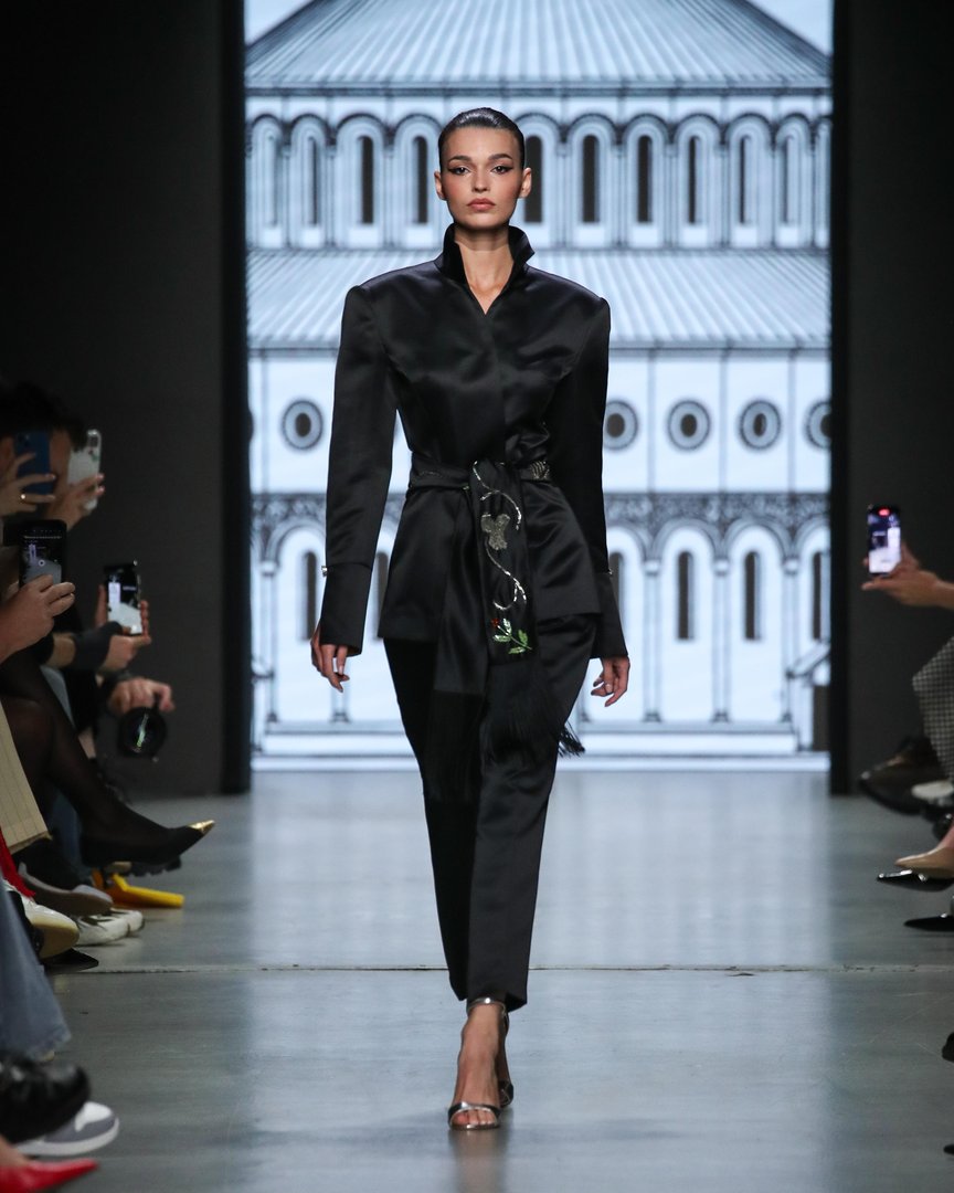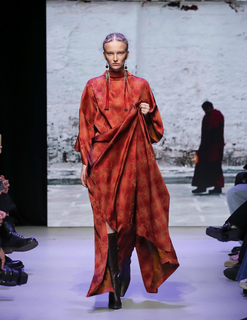 Še en skok v drugo časovno obdobje se je odvil s kitajsko blagovno znamko, ki je tradicionalna oblačila svojih pokrajin interpretirala na moderniziran način. Oblikovalka Ma Guai je starodavni noši qipao in hanfu približala sodobni javnosti in to z lahkoto, ki si zasluži stoječe ovacije. Namesto zapletenih vezenin in draguljev so izstopali drugačni dodatki, vzorčasti pasovi, plapolajoči trakovi, viseči uhani in lahkotne tkanine.