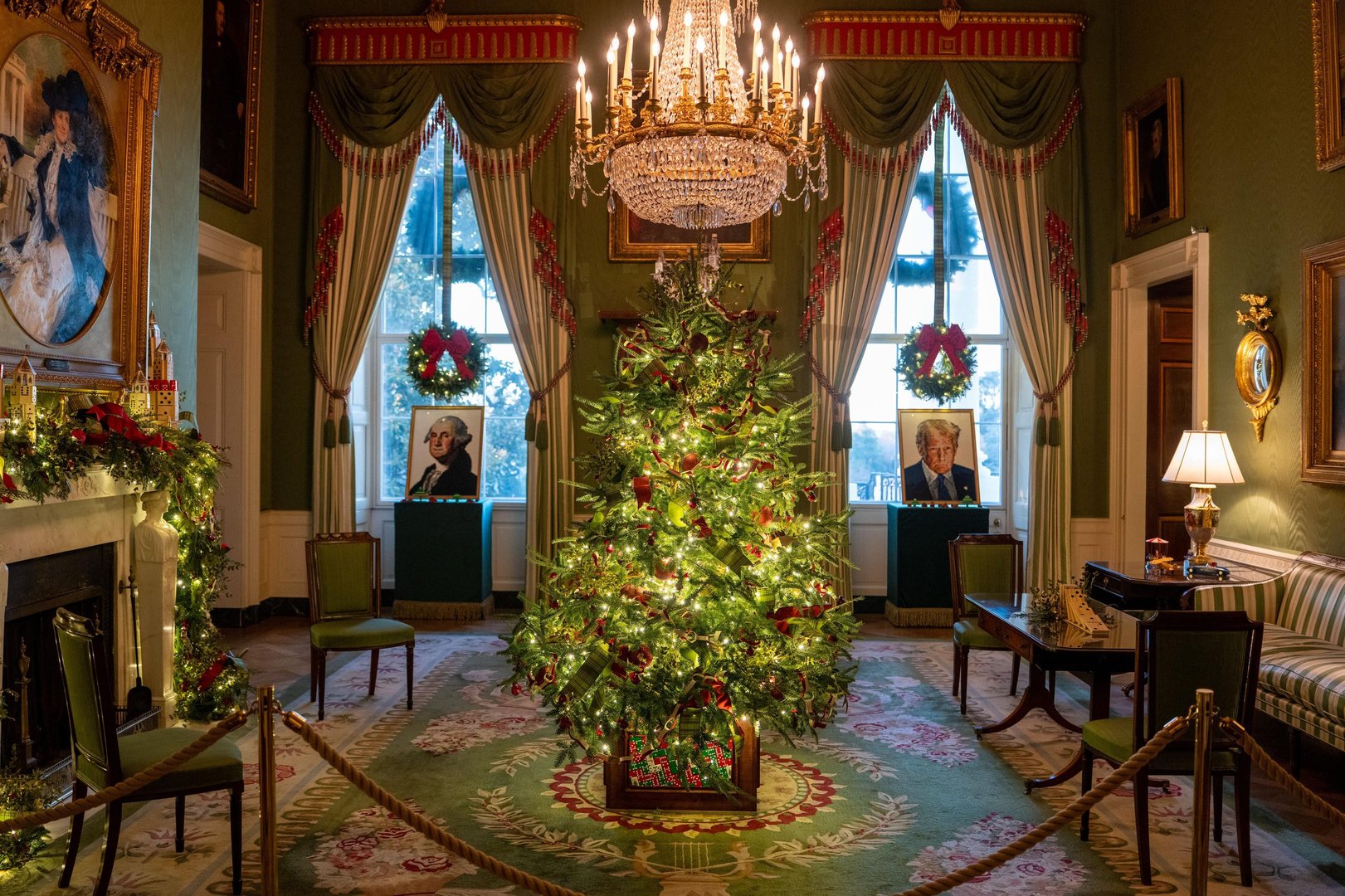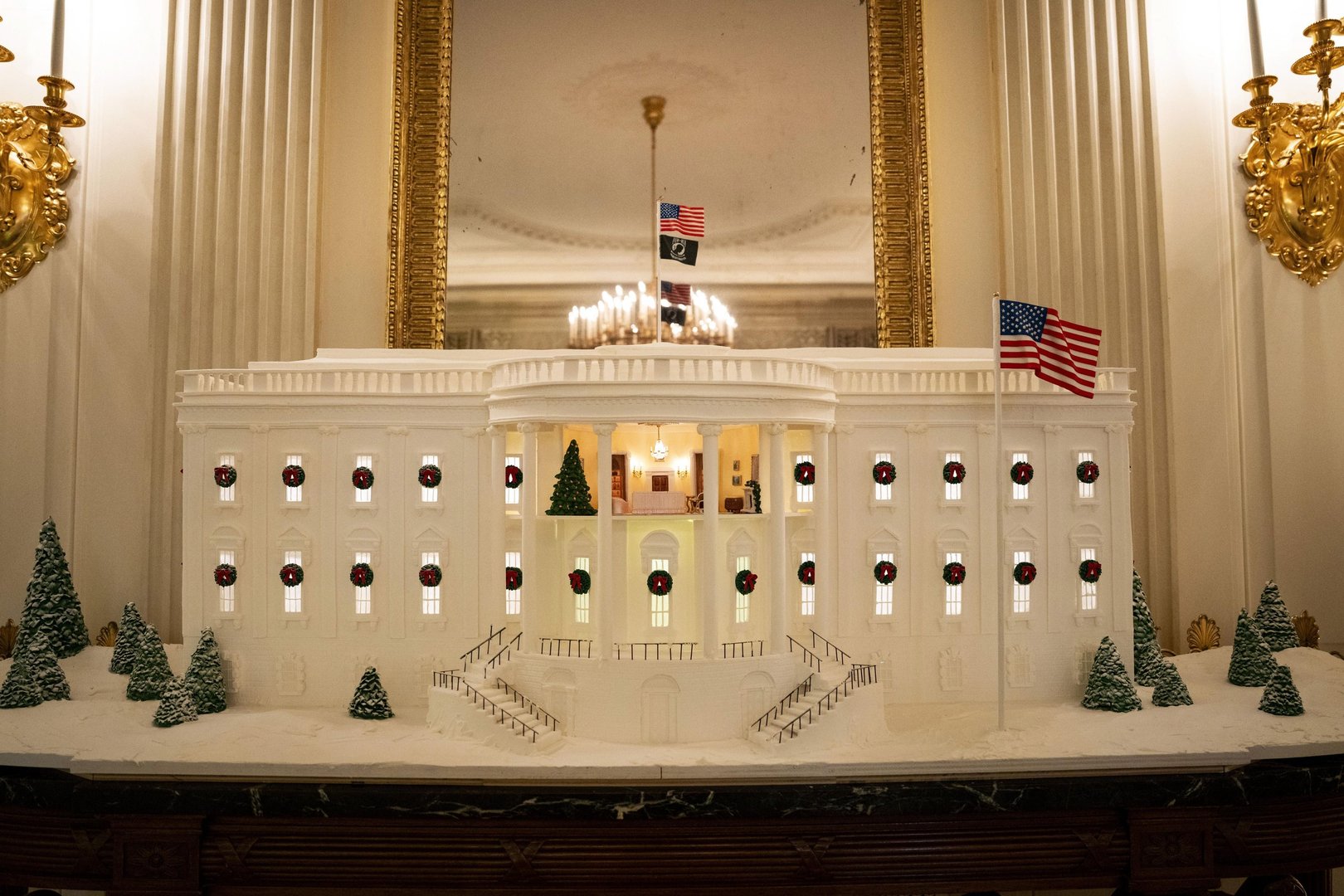 Med okraski je tudi božična hišica iz medenjakov za leto 2025. Po podatkih Bele hiše umetelna stvaritev tehta več kot 120 kilogramov in je razstavljena v državni jedilnici Bele hiše.
