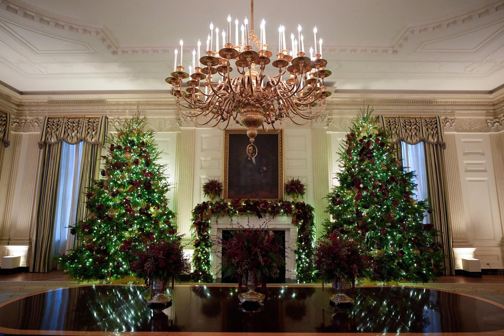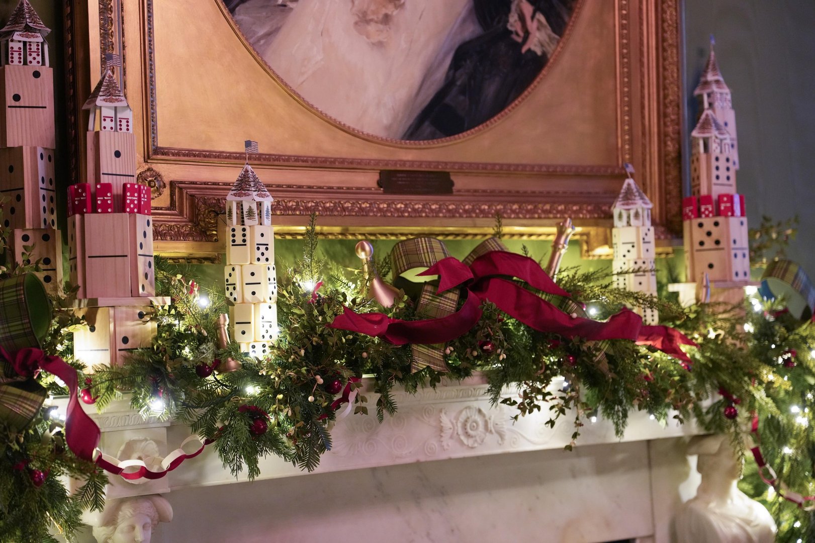 Kamin v Rdeči sobi je posvečen skupnosti rejniških družin, ki je ena ključnih pobud prve dame, so zapisali v sporočilu za javnost Bele hiše. V Vzhodni sobi Bele hiše dekoracija letos obeležuje 250. obletnico Združenih držav Amerike.
