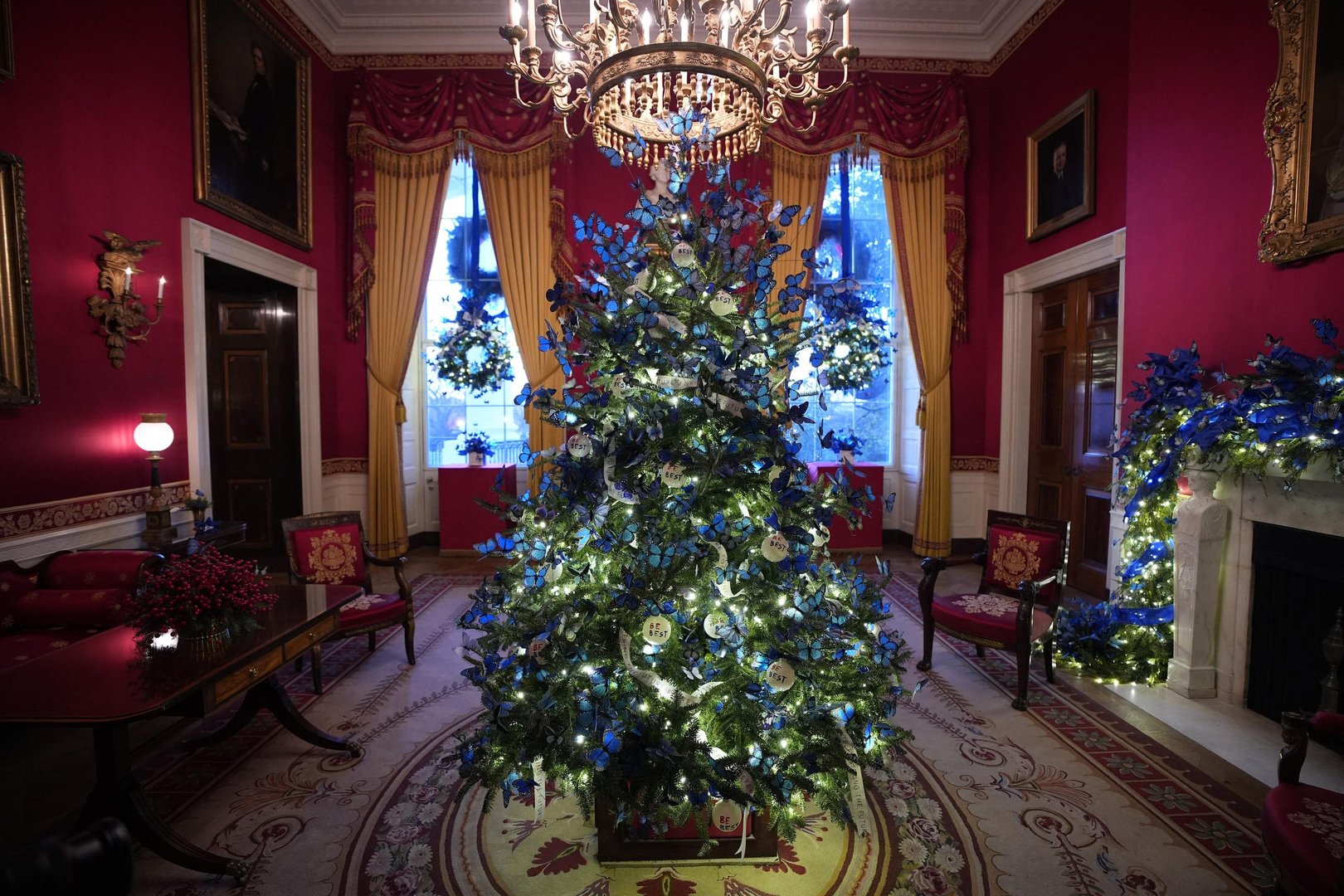 Letos dekoracije sledijo rdeče-beli-modri barvni shemi. V Rdeči sobi Bele hiše modri metulji krasijo božično drevo, ob njem pa visijo bele trakove z napisom »fostering the future« in beli okraski z besedami »Be Best«, kampanje prve dame za ozaveščanje javnosti.